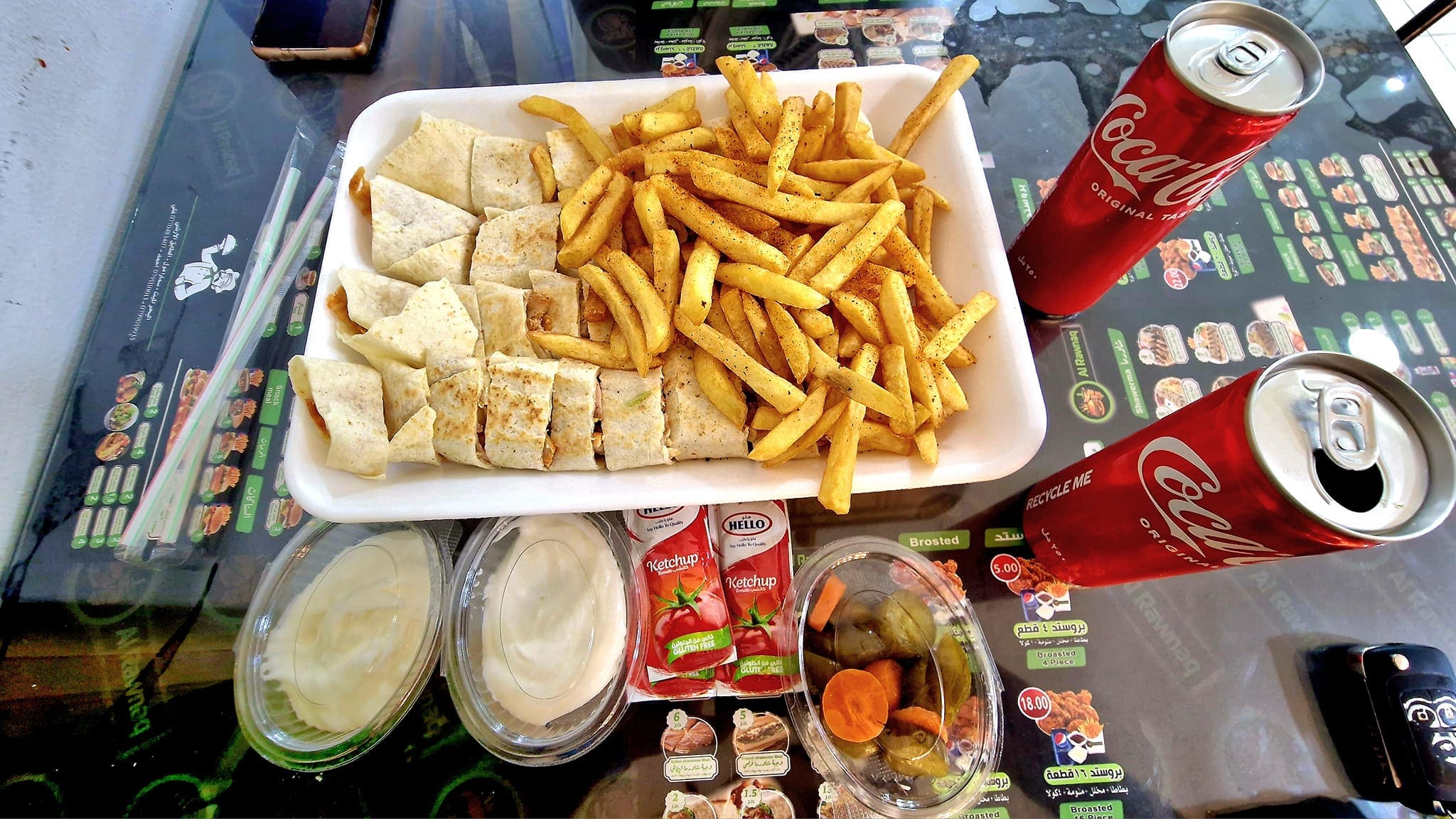Aby táto zachádzka nebola úplne márna, aspoň sme sa poriadne najedli v Mekáči. Tu sme sa stretli s našimi Talianmi z púšte, ktorí boli tiež v Aqabe. Ani sme sa nenazdali a bolo neskoré popoludnie a tak sme znova rozlúčili a vybrali sa každý svojim smerom. Aj keď je apríl, počasie je viac ako letné a tak sa vyberáme do hôr.
