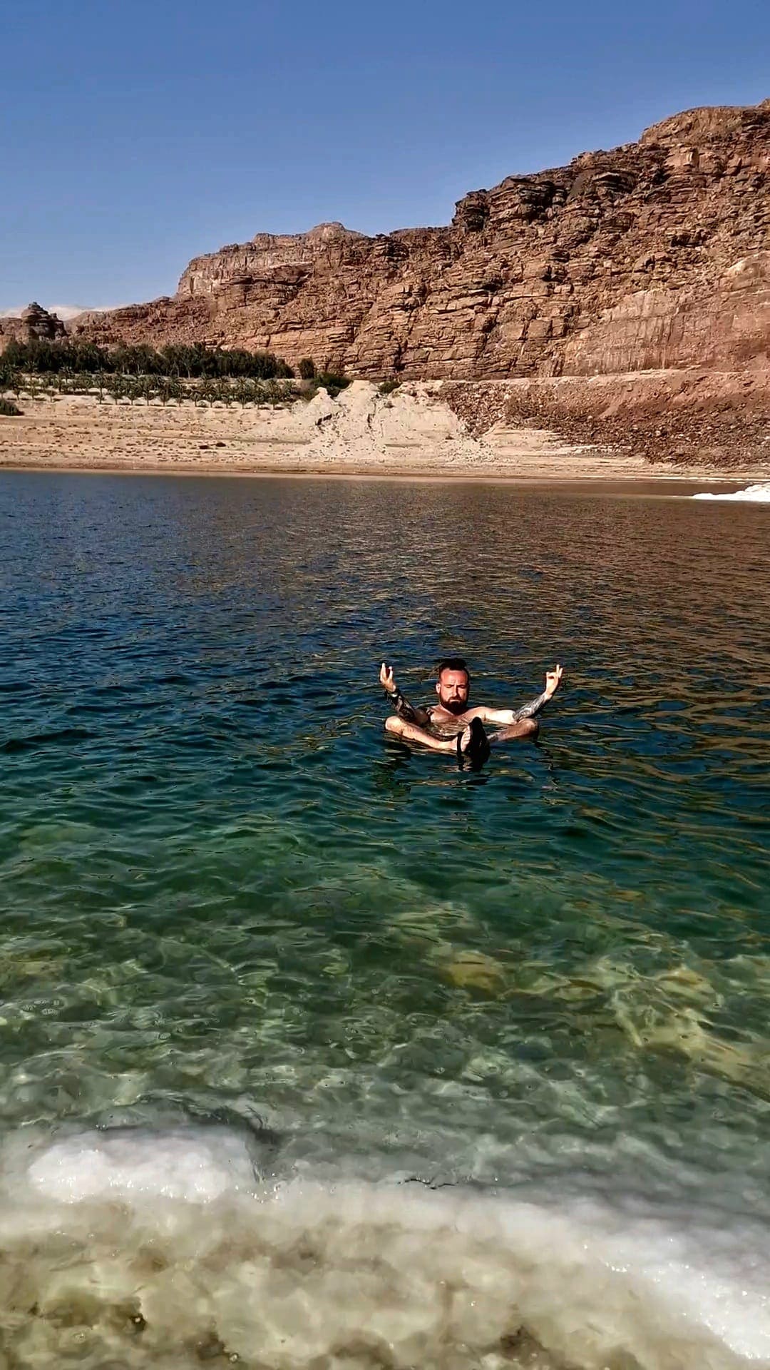 Že má toto more inú hustotu a že nadnáša, určite vieš. Zažiť to na vlastnej koži dá ale zabrať tvojmu vnímaniu reality. Svoje pohyby v podstate nedokážeš ovládať a telo sa ti mení na bójku. A ako to vyzerá v praxi? Pri vstupe do vody maj určite na nohách nejakú obuv, pretože kryštáliky soli sú extrémne ostré a porezať sa v roztoku soli určite nechceš.