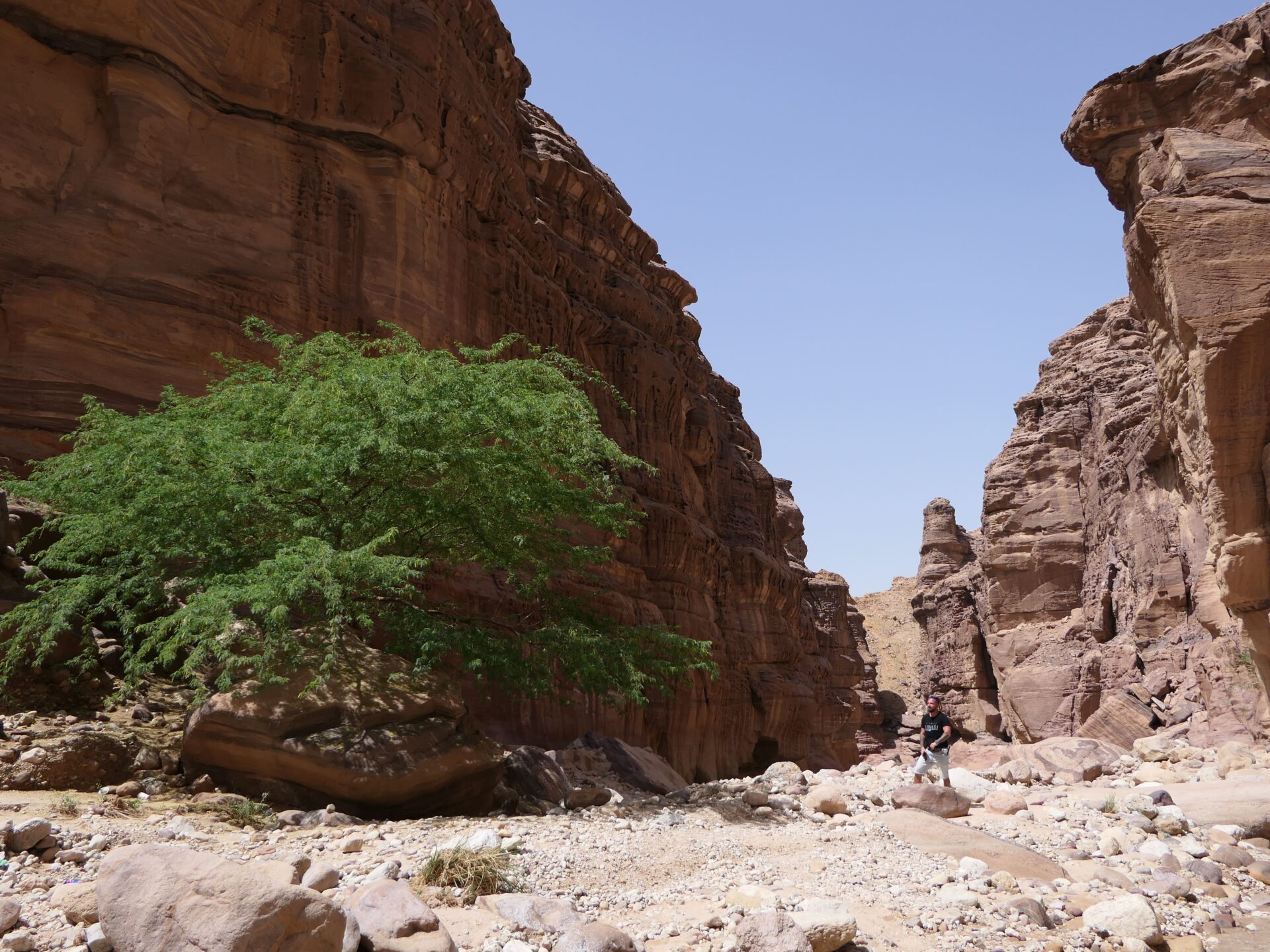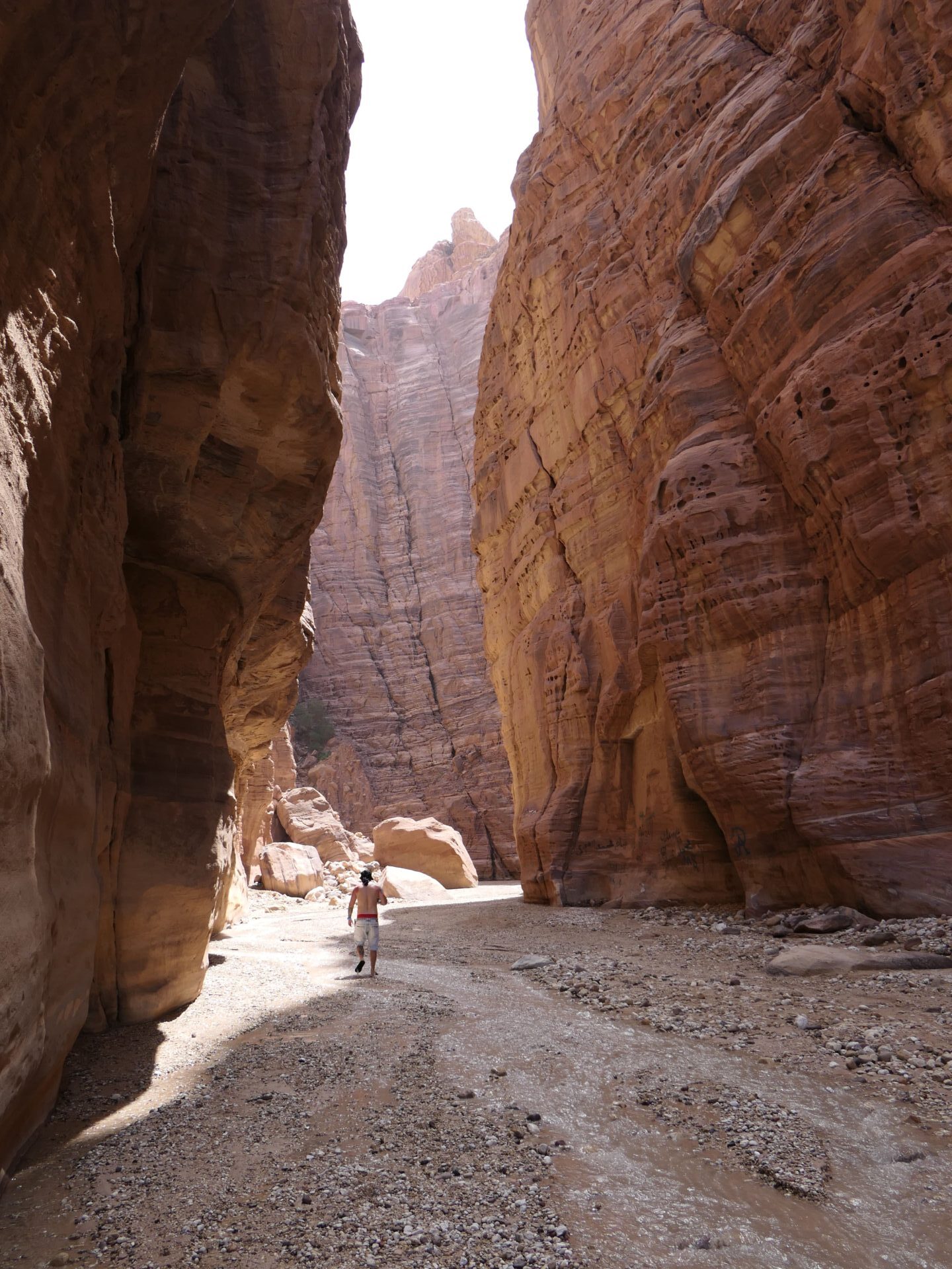 Ideme sa schovať pred slnkom do tieňa kaňonu. Vyberáme si Wadi Numiera. Vraj je jeden z najkrajších v Jordánsku a aj napriek tomu, že je často prirovnávaný k „mini Petre“ patrí stále k menej známym.