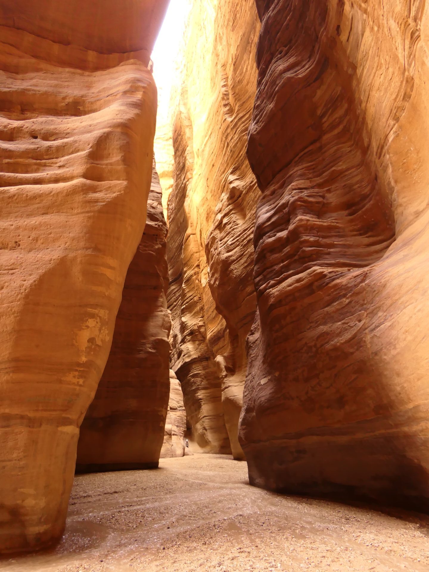 Počas prechádzky uličkou v skalách boli miesta, ktoré nebolo možné prejsť suchou nohou, pretože je to vodný kaňon. Z toho vyplýva, že si treba kontrolovať počasie, pretože pri daždi hrozia bleskové povodne. To sme ale pred návštevou samozrejme nevedeli a aj napriek tomu sme už po pár minútach chôdze začali pochybovať o vhodnosti nového miesta na život pre Judy.