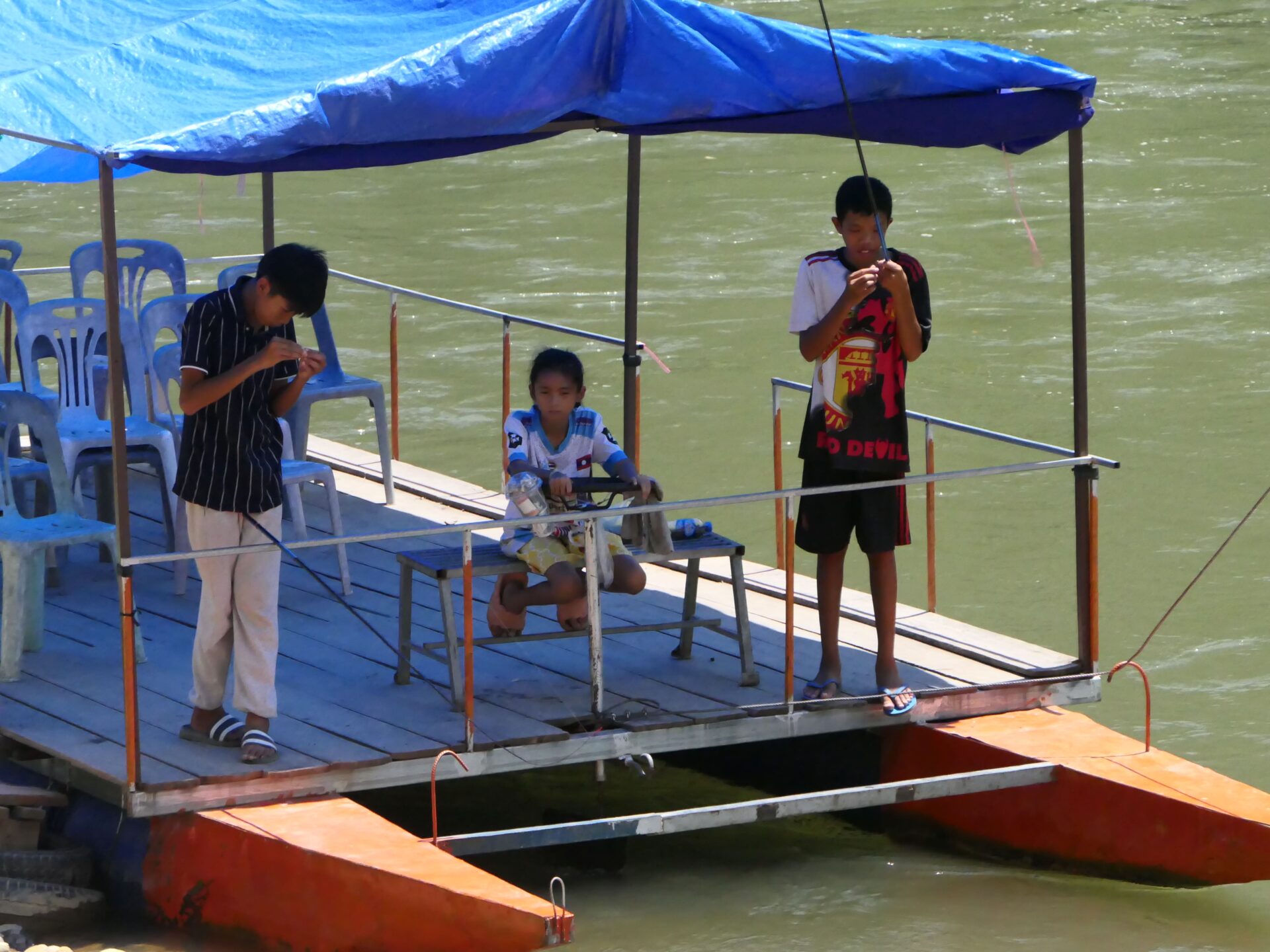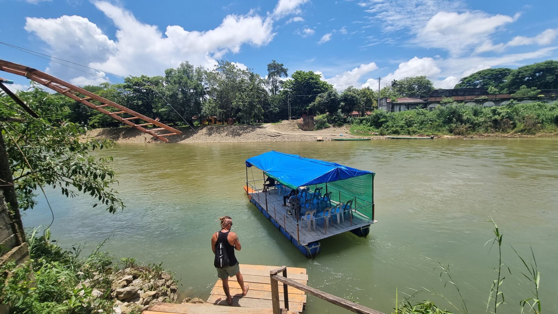 Museli sme zaparkovať na brehu rieky a na druhú stranu sa nechať previesť vorom, ktorý oblsuhovali dvaja malý chlapci, čo mi prišlo celkom úsmevné a z nejakého dôvodu vôbec nie divné. Široká rieka nám dávala nádej, že vody tu je predsa len dosť. Realita ale bola, že sme sa dostali na miesto, ktoré má k sezóne ešte asi celkom ďaleko. Z waw efektu nič, ale keď sme už tu, aspoň sme sa prešli korytom rieky, čo by vytvorila padajúca voda, ktorej čas ešte neprišiel.