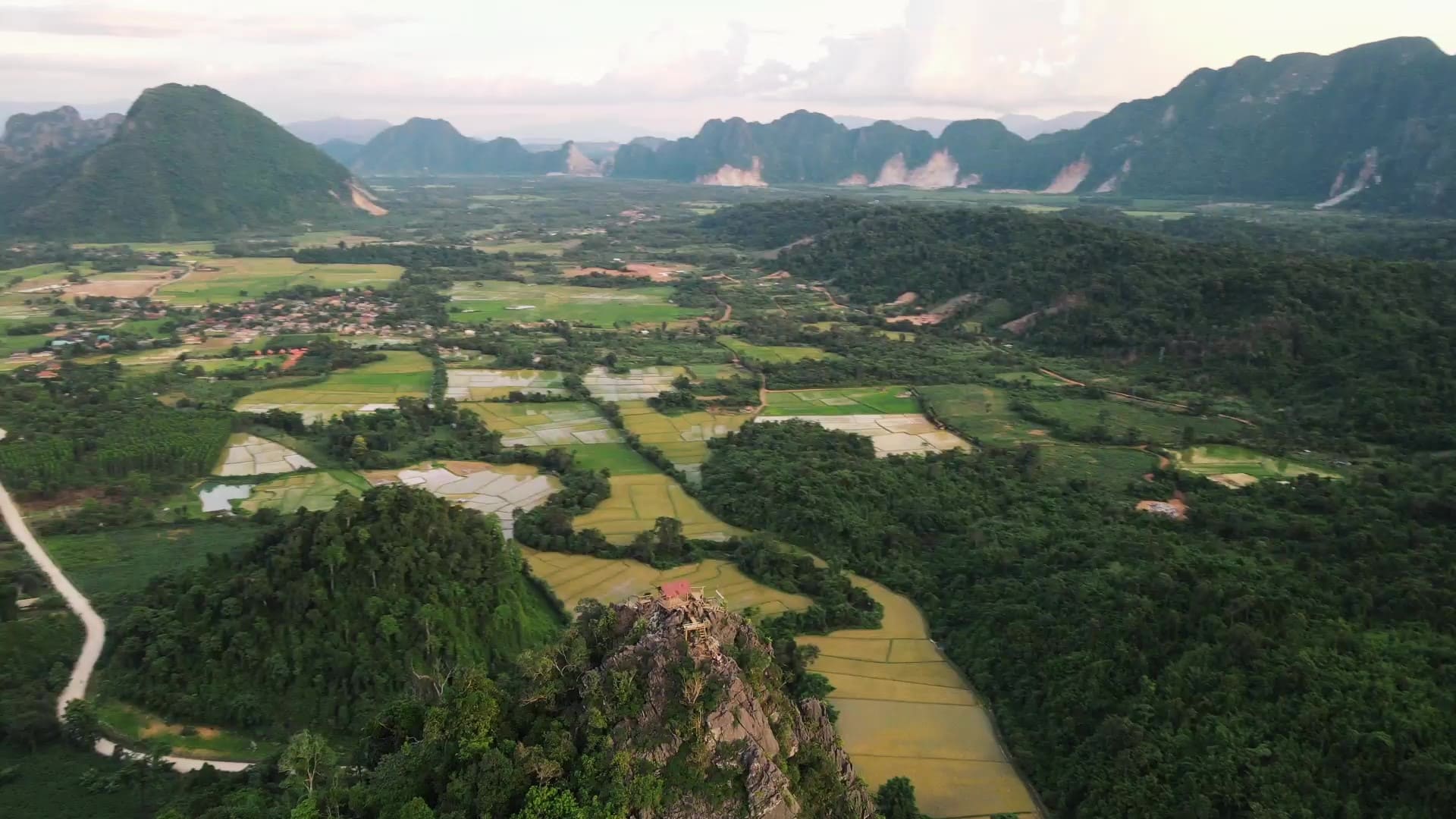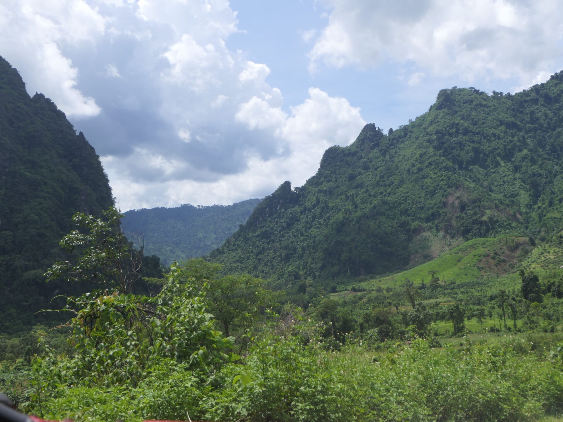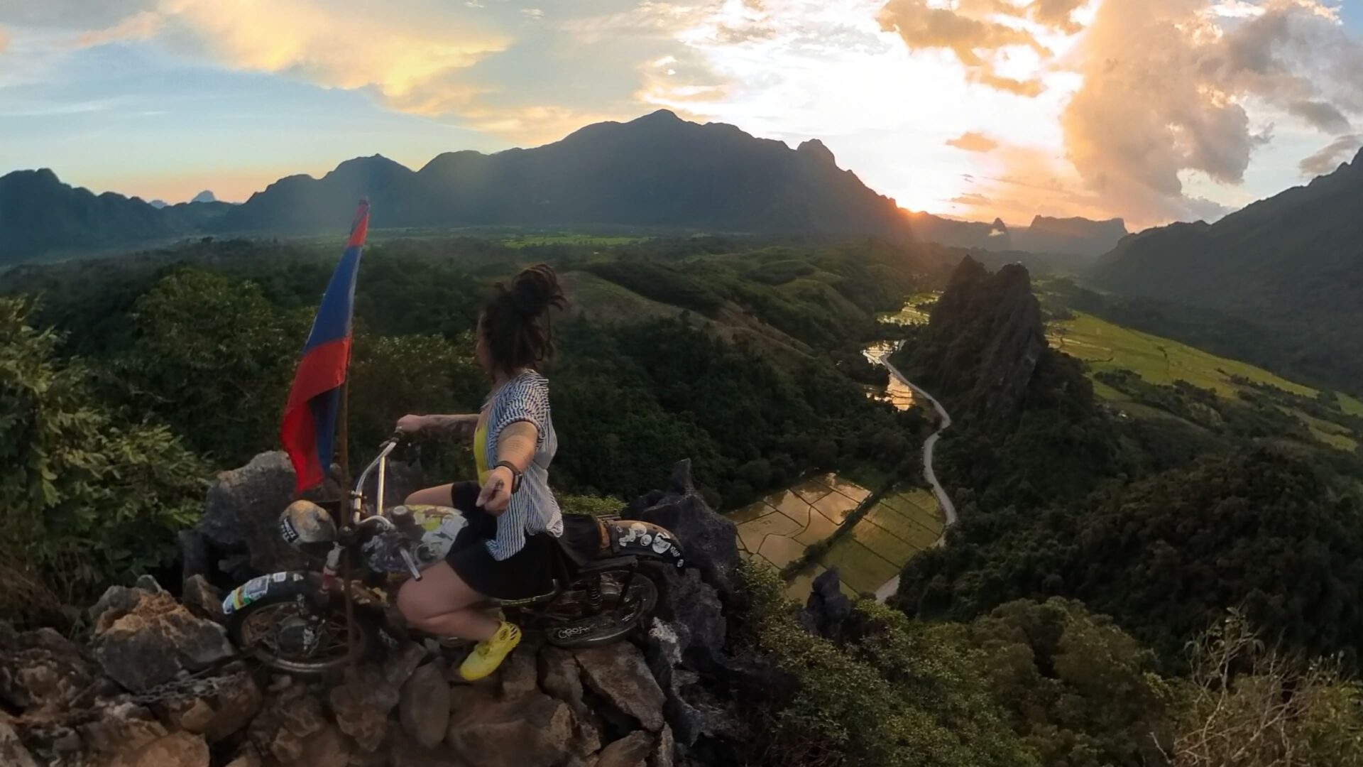 Po ceste zo štvorky sa určite oplatí spraviť si malú zachádzku na vyhliadku Nam Xay. Je to len kúsok od hlavnej cesty a rozhodne stojí za návštevu. Ako som už spomínala, v Laose sme boli počas obdobia dažďov a musím povedať, že každým dňom sa tie krátke prehánky predlžovali. Pod kopec k vyhliadke sme dorazili tesne pred západom slnka.