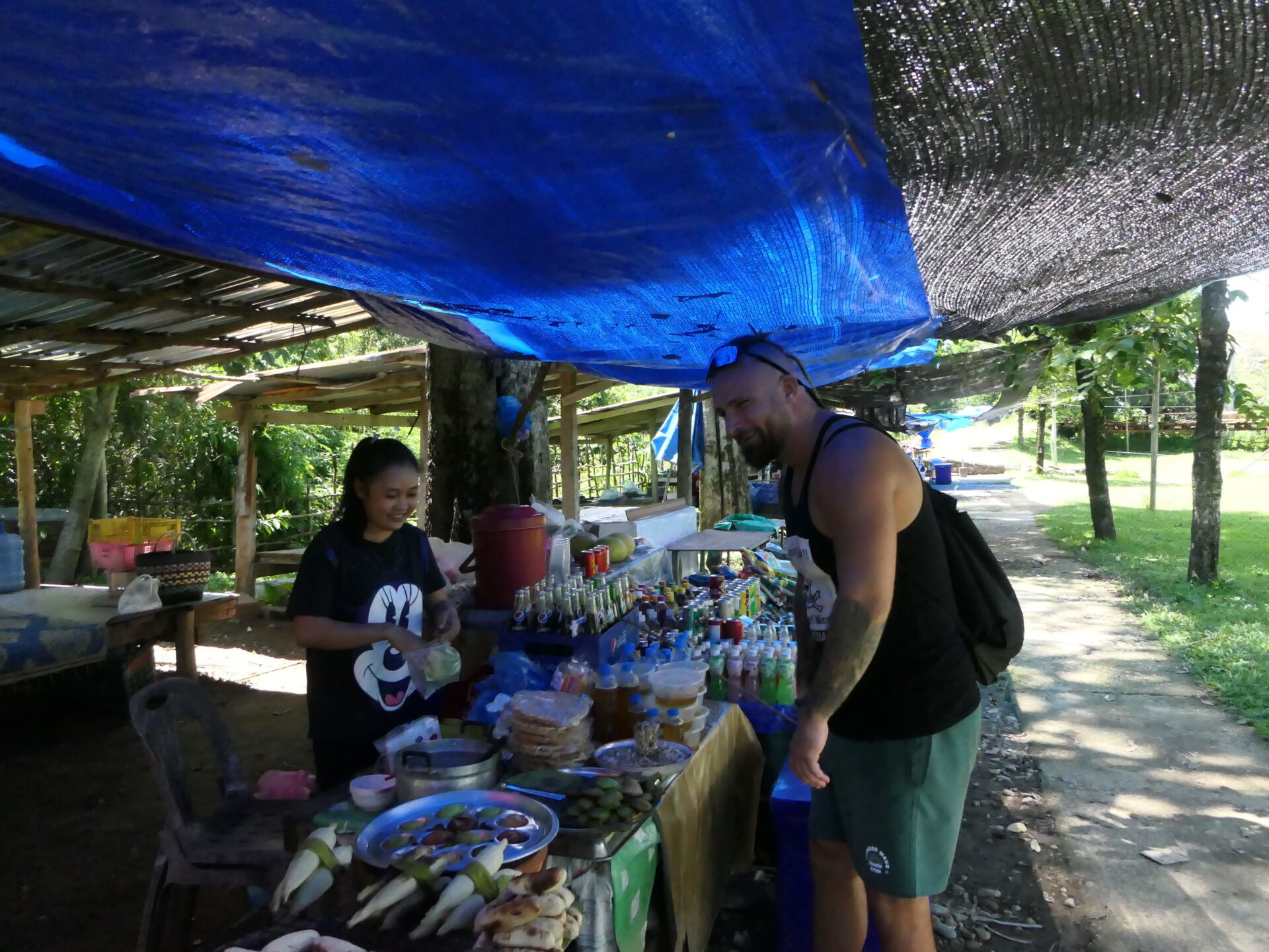 Operácia „oprava uprostred ničoho“ dopadla celkom úspešne. Pán z miestneho občerstvenia nám dal kus igelitu, z ktorého sme spravili provizórnu šnúru a výfuk sme jednoducho priviazali. Od lagúny to už k požičovni nebolo ďaleko, takže šanca, že to vydrží, bola celkom vysoká.